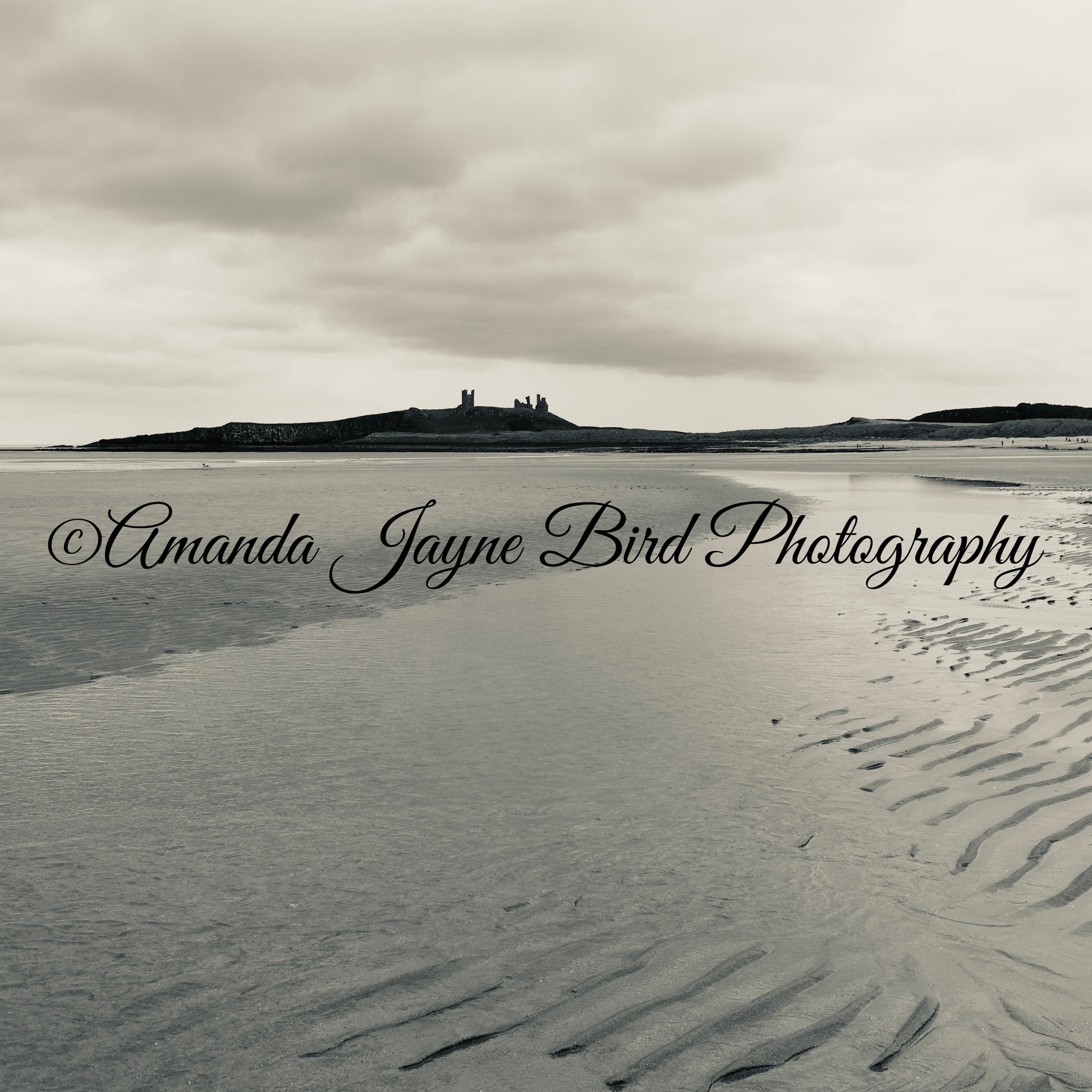 Showcase the stunning beauty of Dunstanburgh Castle from Embleton beach in black and white with this exquisite print available for purchase.